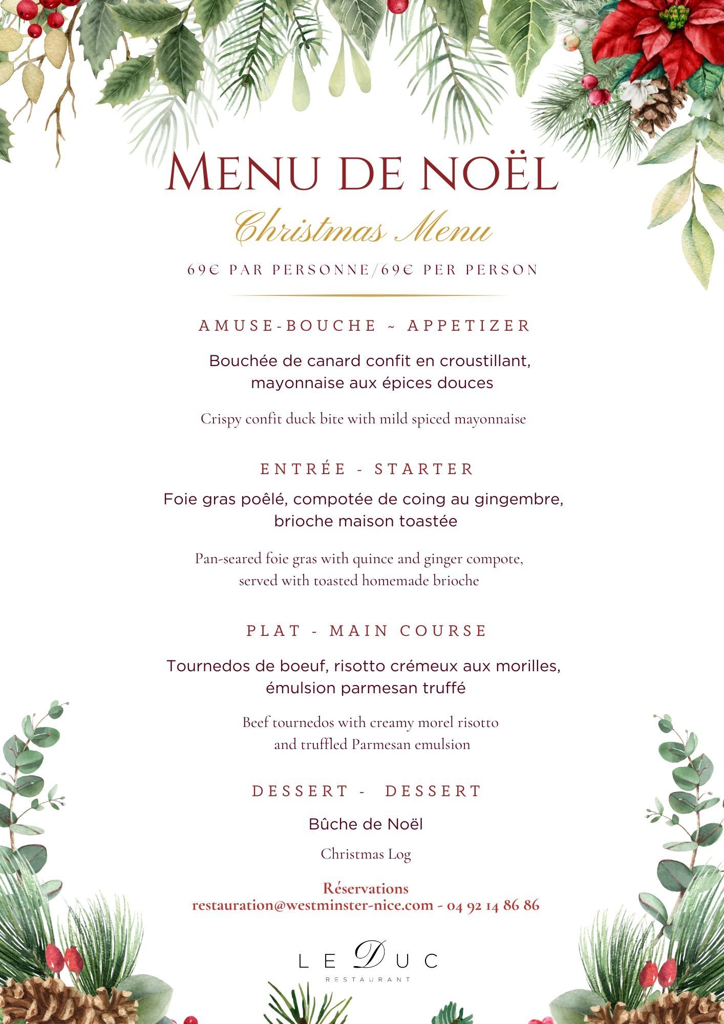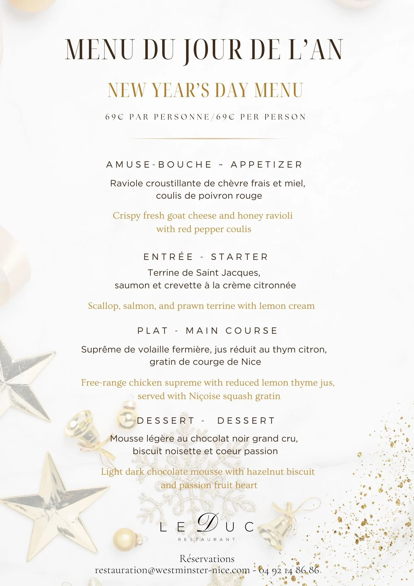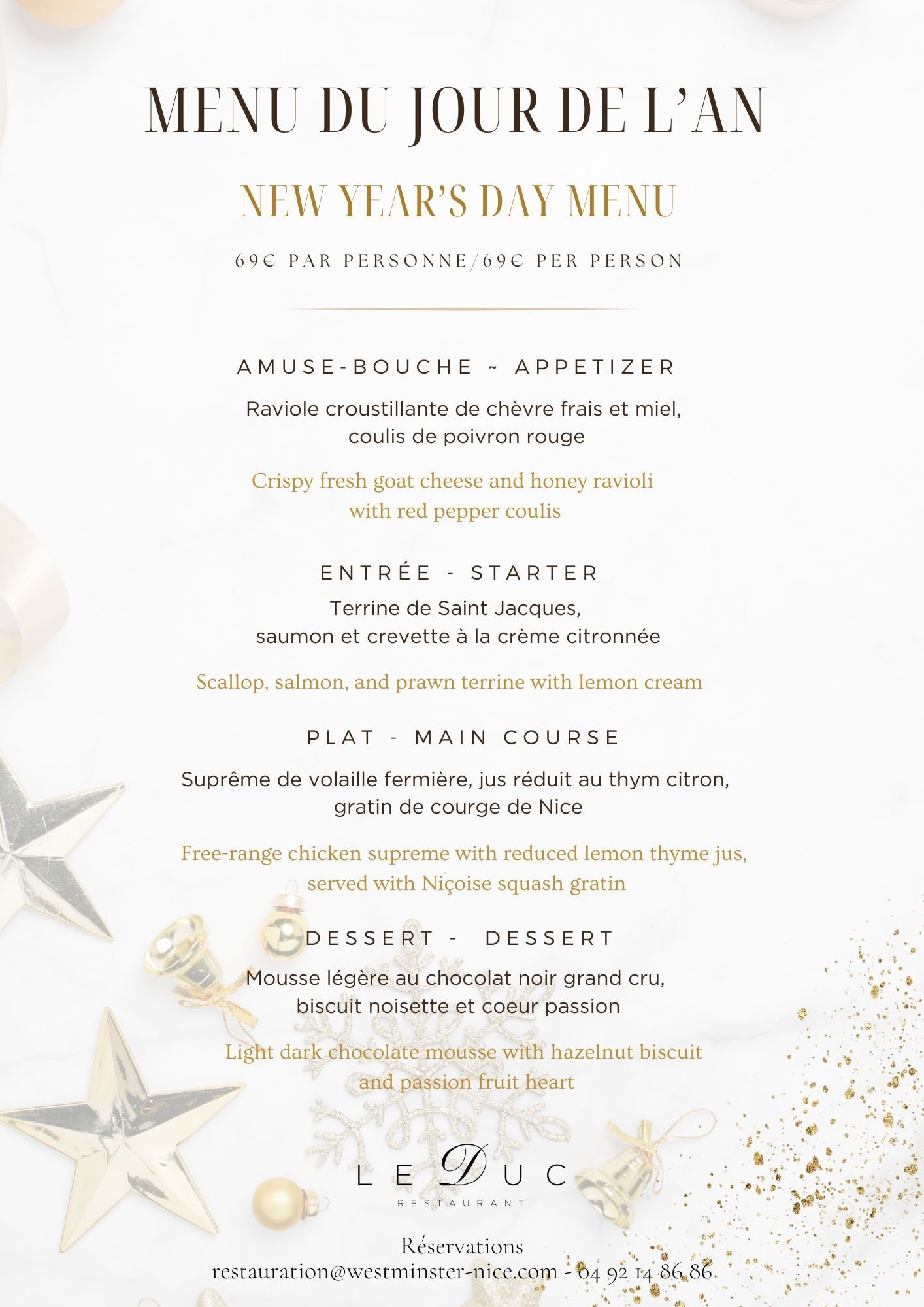 Each carefully crafted dish invites you to savor the beginning of the year with delicacy and refinement. Come experience this first day of 2025 in joy and tranquility at Le Duc, where every moment is a promise of happiness and renewal.